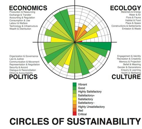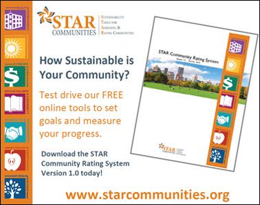 If cities and towns are the proximate ideal units for sustainable community, it’s not surprising that they have taken the lead in trying to define a methodology. In 2007, ICLEI joined with the US Green Buildings Council and the Center for American Progress to create the Star Community Rating System. The STAR Community Rating System is both a framework and a certification program. Local governments across the nation are using it as a roadmap, as a planning tool, to organize/guide public engagement processes, to aid in decision-making, for performance-based budgeting, and as a measuring stick to determine whether their investments are achieving outcomes.
